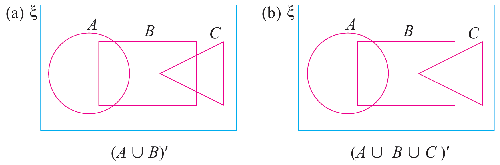 Pelengkap bagi kesatuan set ditulis dengan menggunakan (A ∪ B)’, dibaca sebagai “pelengkap bagi kesatuan set A atau set B”.