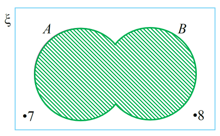 Gambar rajah Venn menunjukkan set semesta ξ, set A dan set B.